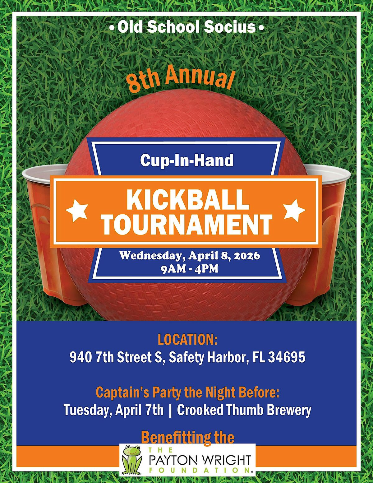 Come join us for our 8th Annual Cup-in-Hand Kickball Tournament benefitting The Payton Wright Foundation.