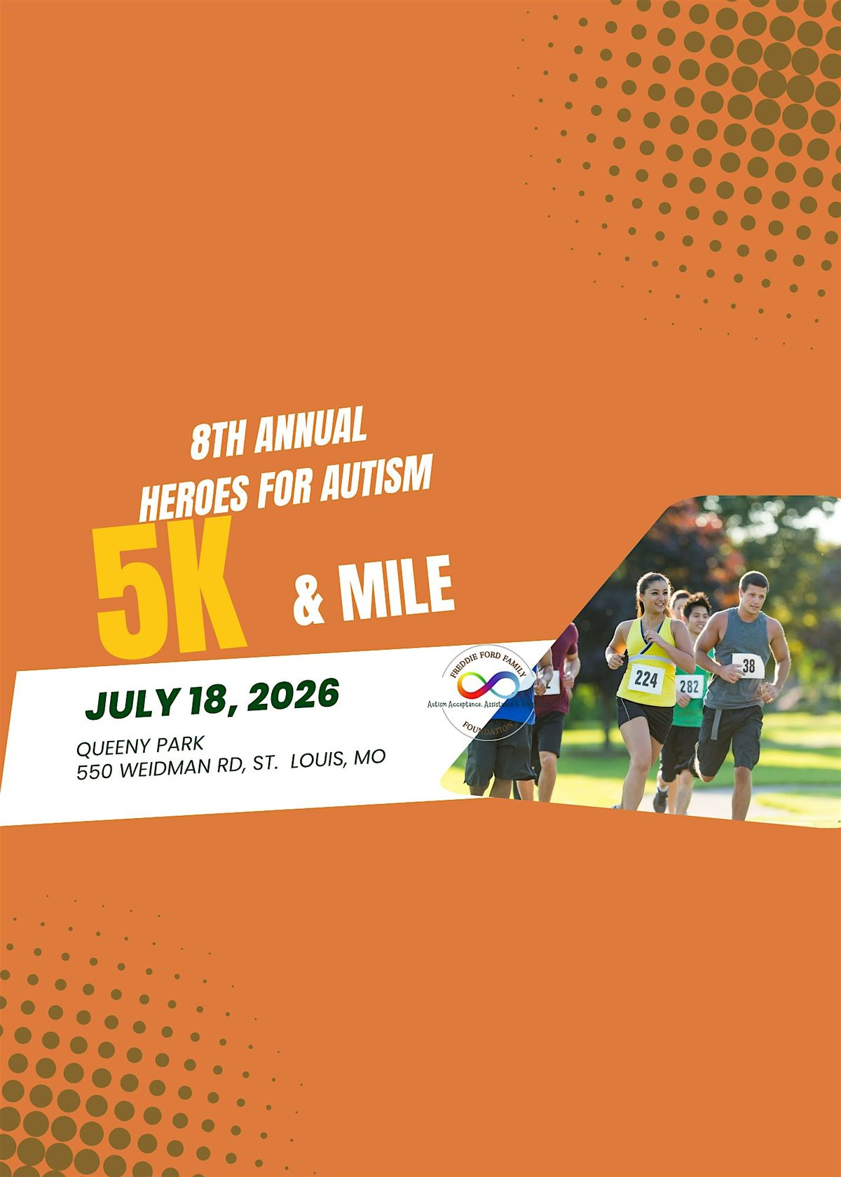 ๐ Join us for the Annual Heroes for Autism 5K and Mile ๐โโ๏ธ, a remarkable charity event dedicated to supporting the Freddie Ford Family Foundation's mission of raising awareness and acceptance of autism. This family-friendly extravaganza will take place on July 18, 2026, from 8 am to 11 am at the scenic Queeny Park in St. Louis, Missouri.
