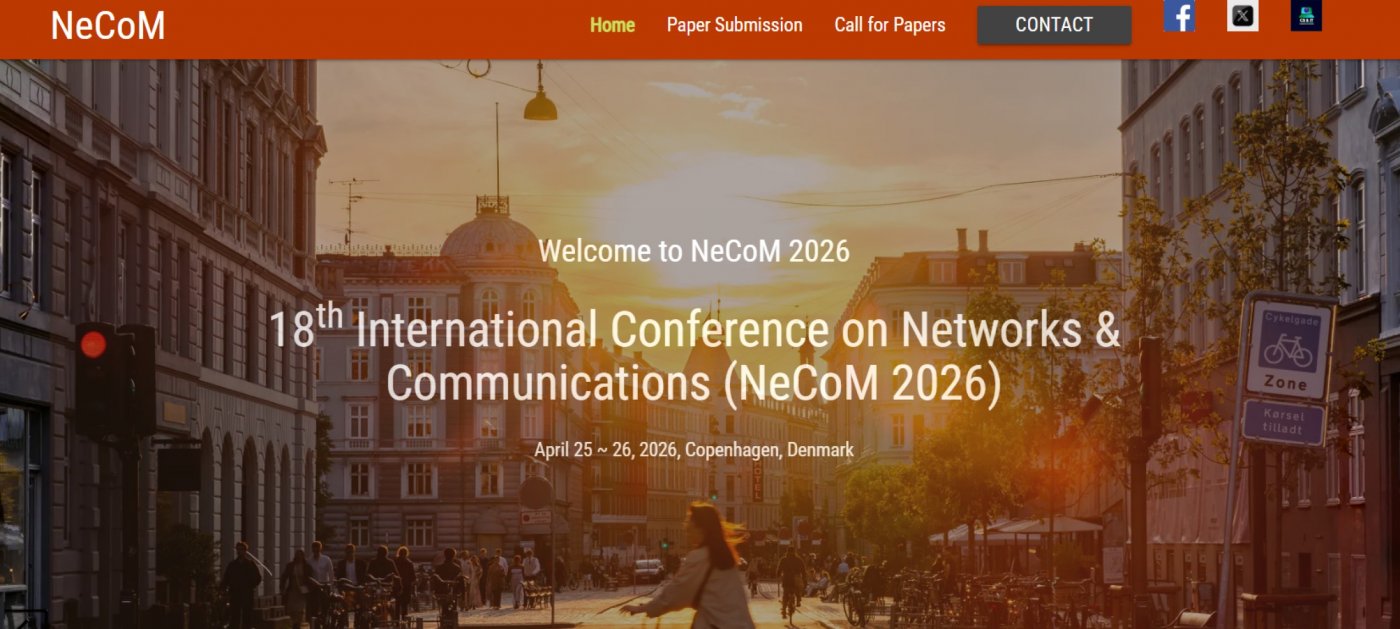 18th International Conference on Networks & Communications (NeCoM 2026) will provide an excellent international forum for sharing knowledge and results in theory, methodology and applications of Computer Networks & Data Communications. The conference looks for significant contributions to the Computer Networks & Communications for wired and wireless networks in theoretical and practical aspects. Original papers are invited on computer Networks, Network Protocols and Wireless Networks, Data communication Technologies, and Network Security. The aim of the conference is to provide a platform to the researchers and practitioners from both academia as well as industry to meet and share cutting-edge development in the field.