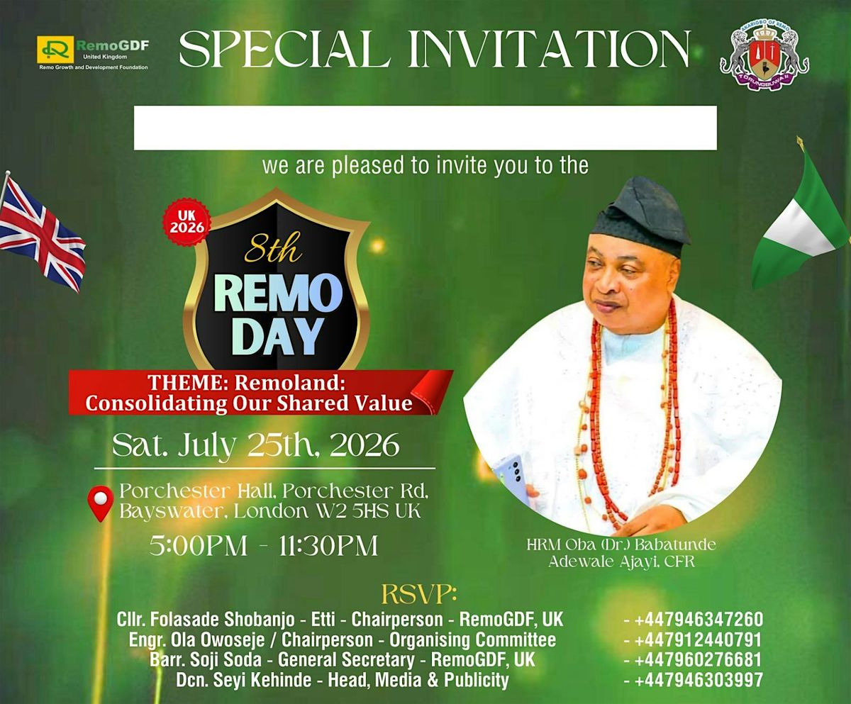 Join us for the 8th Remo Day UK; a vibrant celebration of Remo heritage, unity, & progress @ the Porchester Hall, Bayswater, London W2 5HS