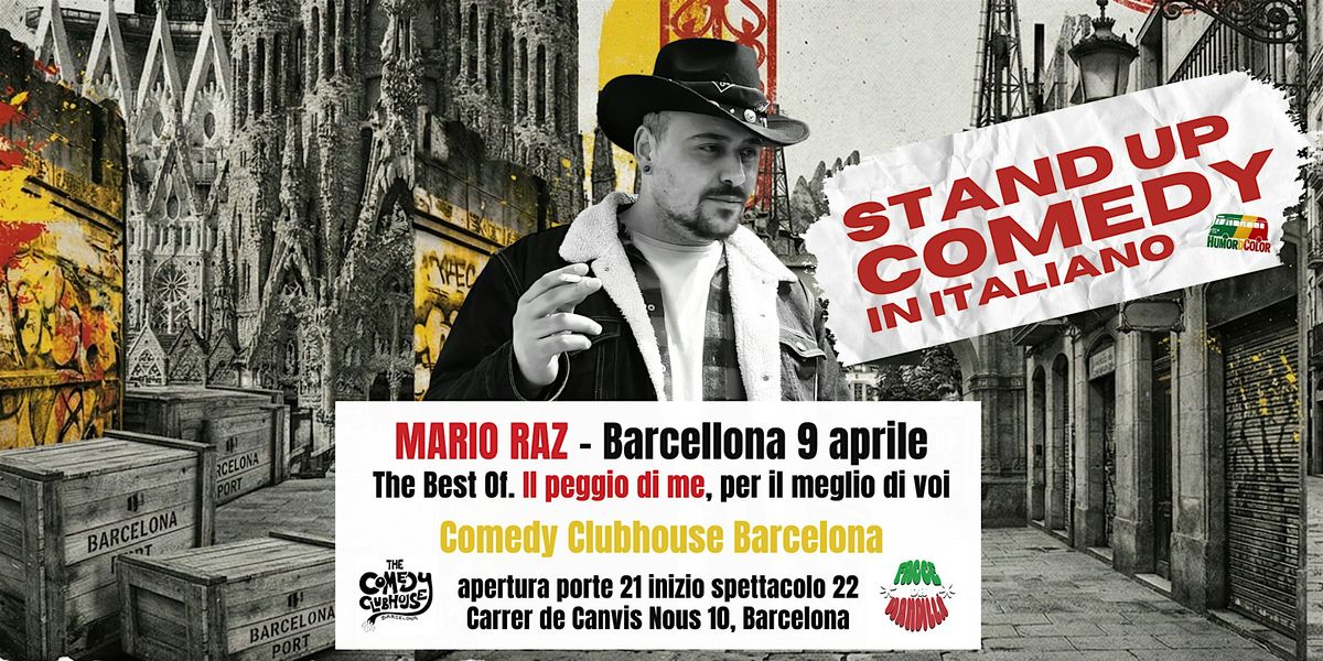 Mario Raz apre il suo tour europeo e porta a Barcellona un evento imperdibile per la nostra community di expat. Giovedì 9 Aprile 2026, sbarca in città Mario Raz, attore, autore televisivo ed ex volto noto di Comedy Central (dove è stato membro fisso del cast di "Stand Up Comedy" per ben 5 stagioni).