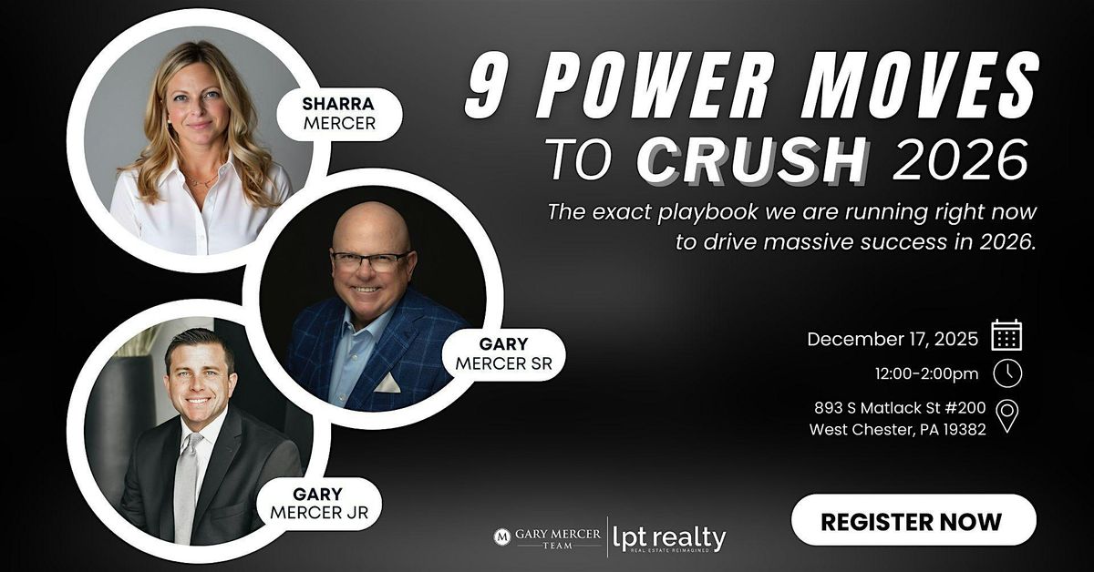 Join Gary Mercer Sr., Gary Mercer Jr., and Sharra Mercer for 9 Power Moves to Crush 2026, a game changing session designed for agents who refuse to settle and are ready to dominate the year ahead.