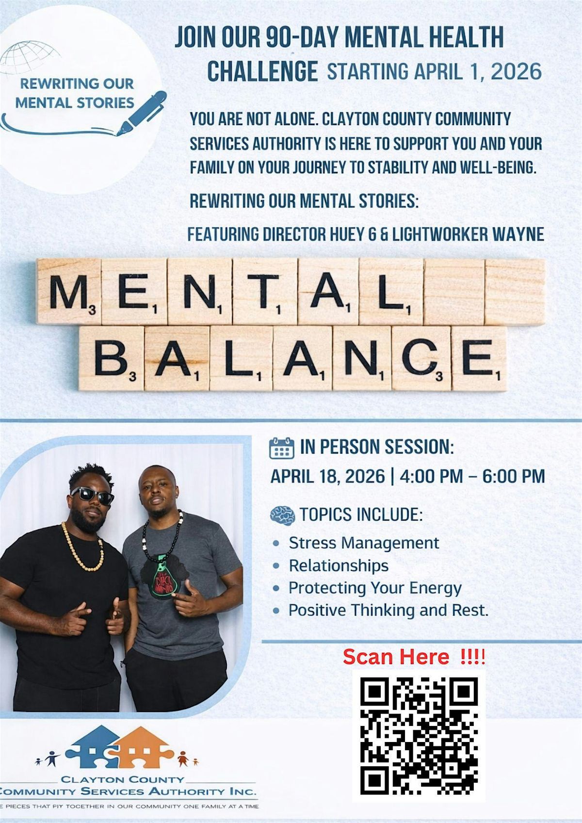 Get ready to boost your well-being with our fun and supportive in-person event. Over 90 days, we’ll tackle mental health together with easy tips, group activities, and motivational talks. Whether you're looking to de-stress, build resilience, or just connect with awesome people, this challenge is for you. Come as you are and let's make the next 3 months count!