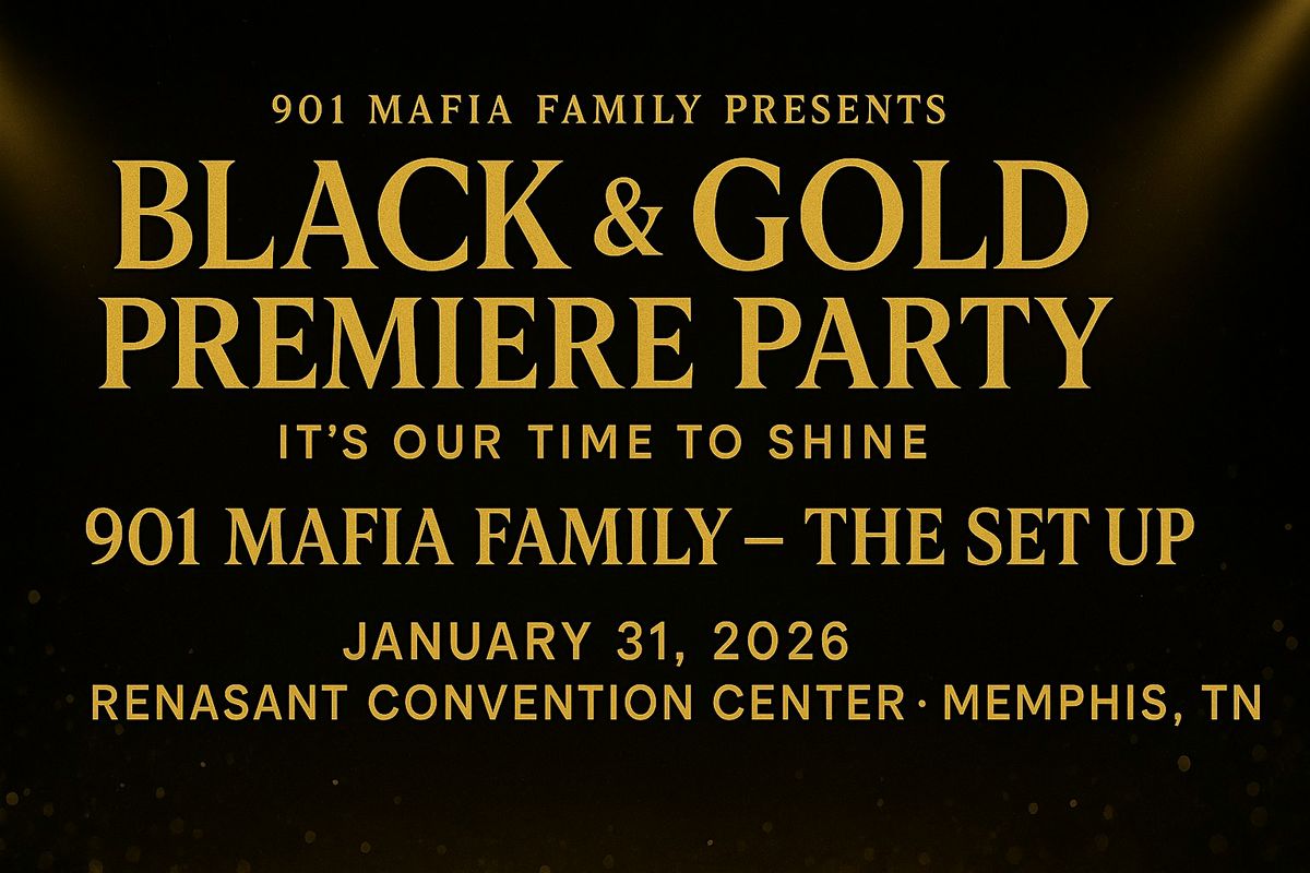 Join us for the Black & Gold Hollywood Premiere of 901 Mafia Family – The Set Up. Enjoy a red-carpet entrance, dinner, live entertainment, and the first official screening of our new TV series. This event is also a fundraiser and industry networking night, featuring Hollywood talent, agencies, and scouts. Come dressed to shine and be part of a powerful night supporting the future of 901 Mafia Family.