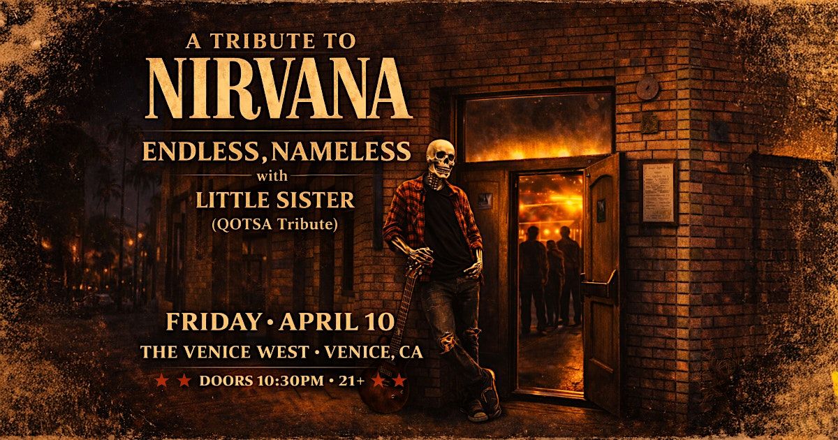 Endless, Nameless brings the raw sound and energy of Nirvana to the stage β from the iconic hits to the deep cuts that defined the grunge era. Expect a loud, honest set that captures the spirit of Nirvana the way it was meant to be played.
