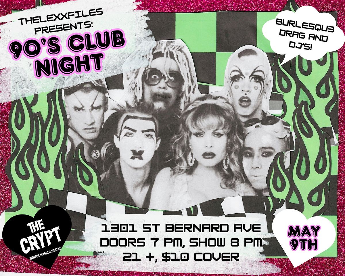 Get ready to party like the 90's Club kids! Join us at The Crypt on May 9, 2026 at 7:00 PM for a night packed with all your favorite club hits from the decade.