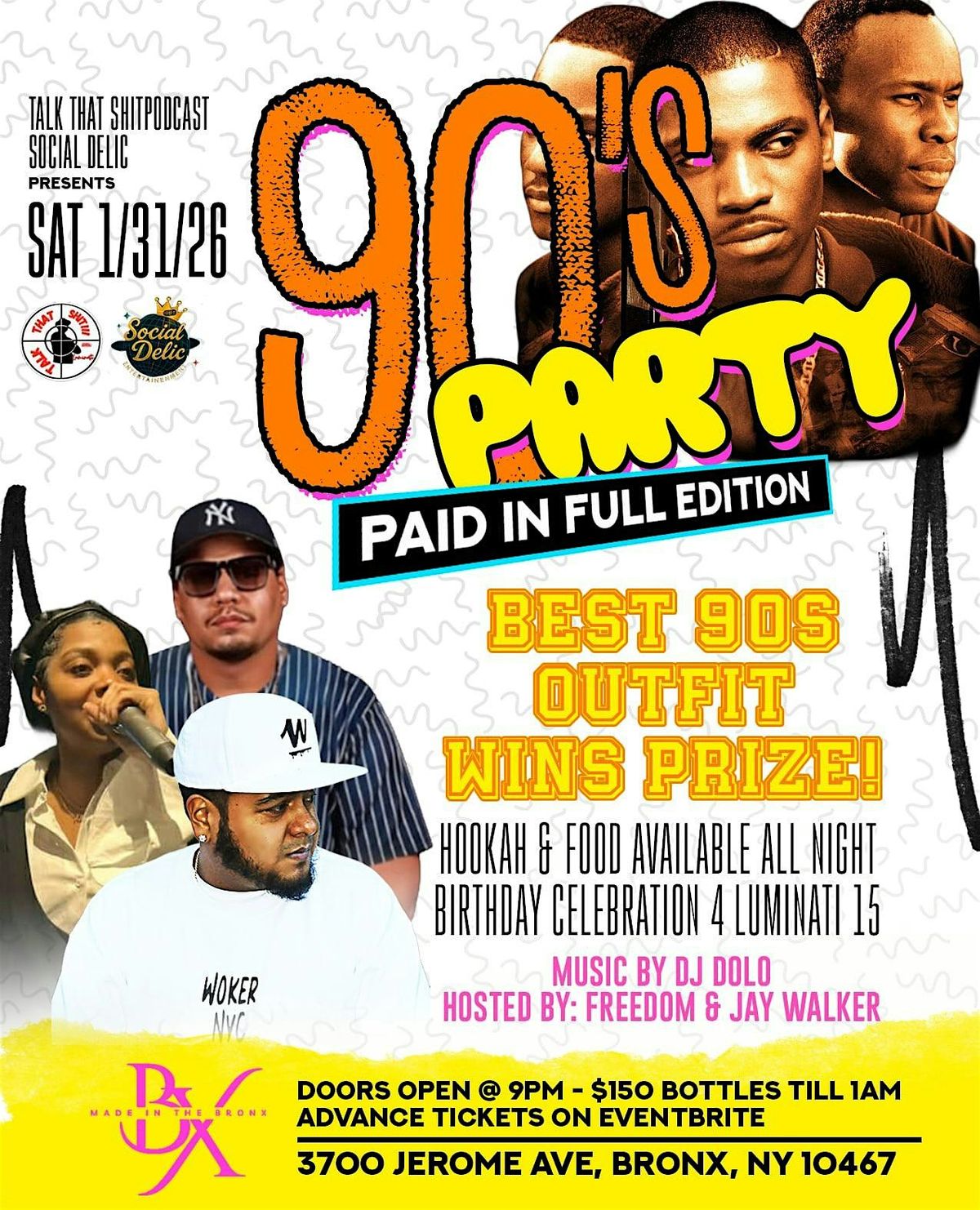 Bronx, NY - Sat Jan 31st join us at @madeinthebronx___ 4 our 90s party. Doors open at 9pm. $150 bottles till 1am. Bday party 4 LUMINATI 15