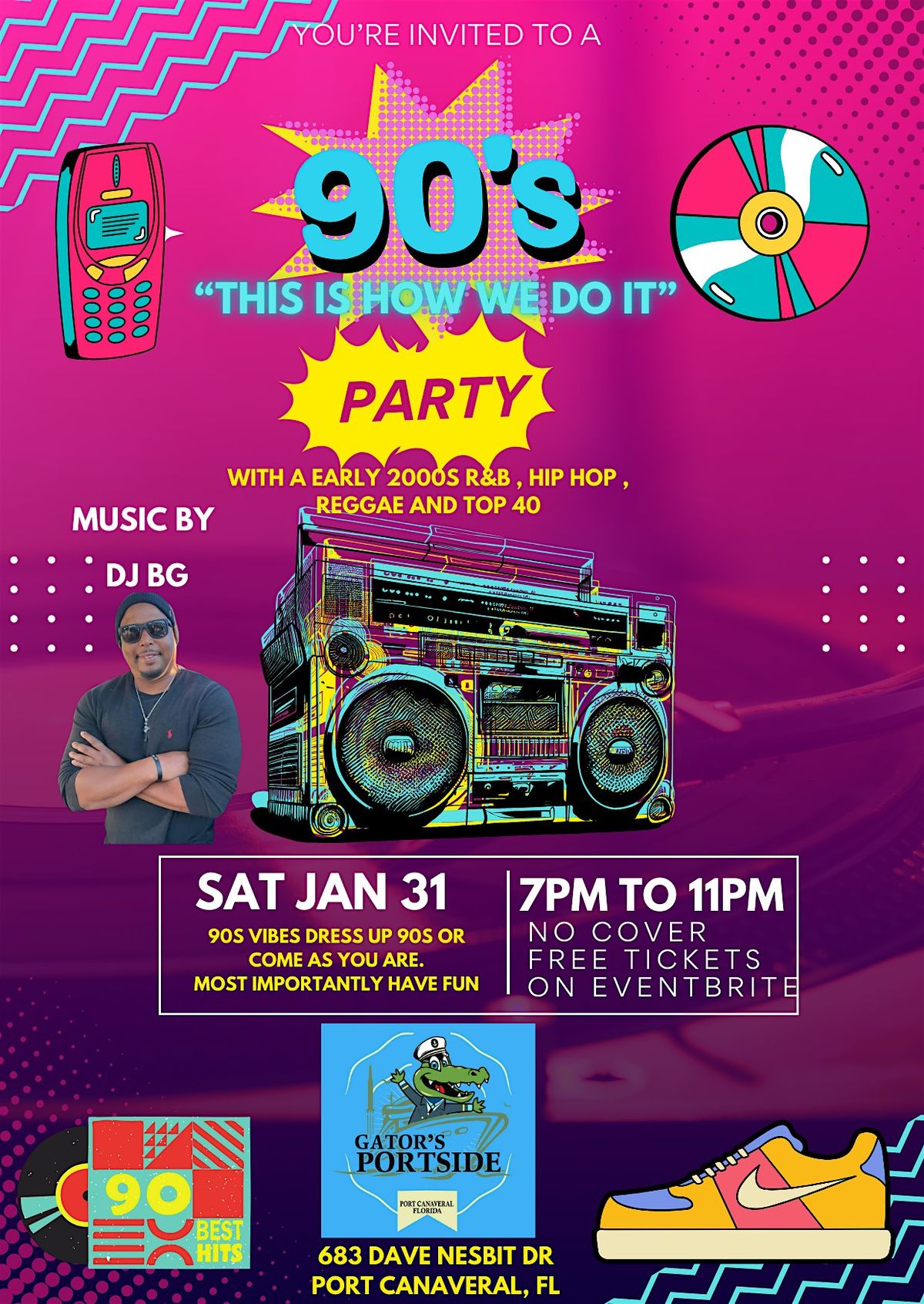 This is **the party you don’t want to miss** – tell your friends, share the date, and get ready for an unforgettable 90s night at Gators Portside! 💿🕺