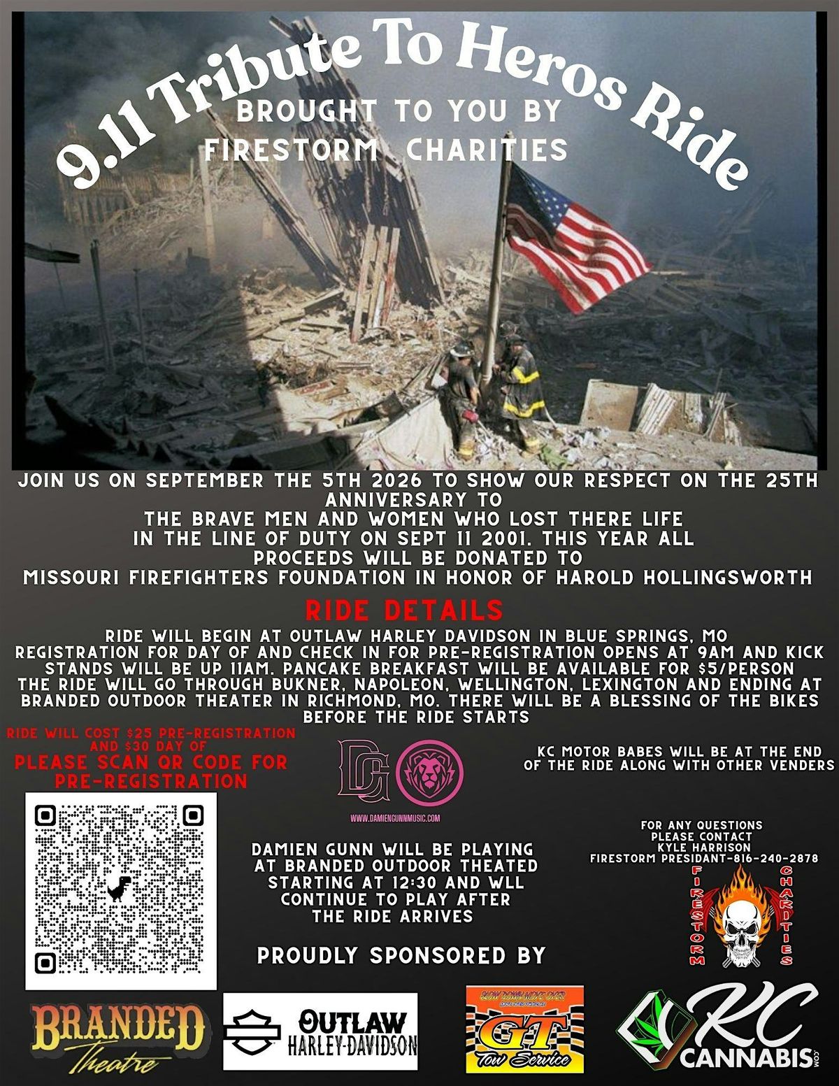 JOIN US ON SEPTEMBER THE 5TH 2026 TO SHOW OUR RESPECT ON THE 25th ANNIVERSARY TO THE BRAVE MEN AND WOMEN WHO LOST THERE LIFE IN THE LINE OF DUTY ON SEPT 11 2001. THIS YEAR ALL PROCEEDS WILL BE DONATED TO MISSOURI FIREFIGHTERS FOUNDATION IN HONOR OF HAROLD HOLLINGSWORTH