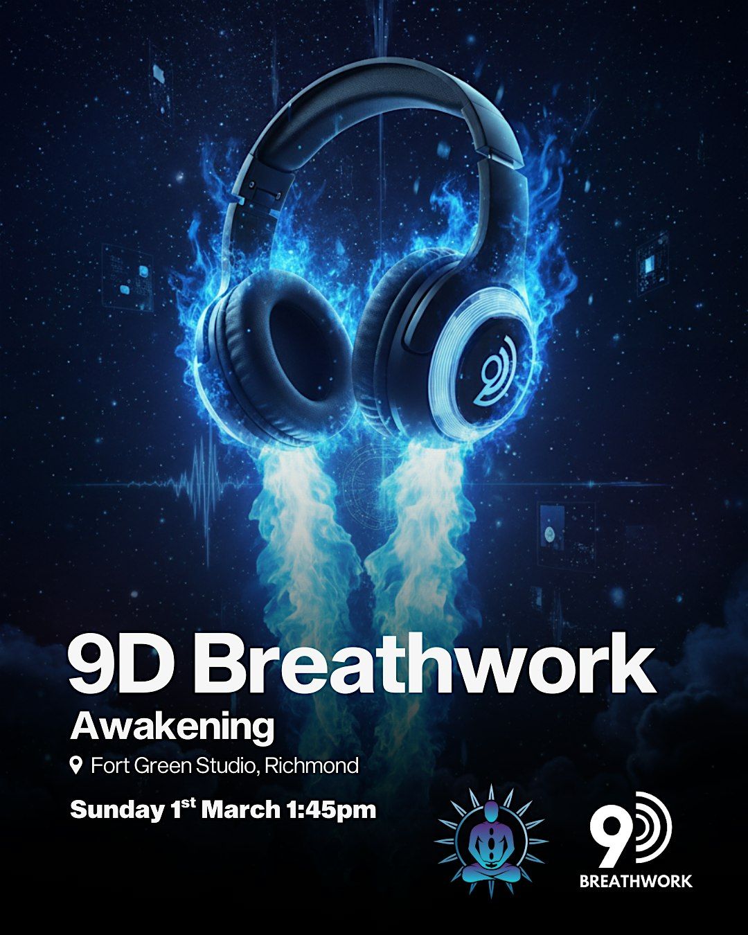 In this 60-90 minute session, you’ll be guided through a dynamic breathwork practice in a safe, supportive environment. The 9D method combines rhythmic breathing with multi-layered audio, including binaural beats and vibrational frequencies, to deepen your connection to body and mind. You’ll lie down comfortably, allowing the breath and sound to guide you into a meditative state. No prior experience is needed—just an open mind and a willingness to explore.