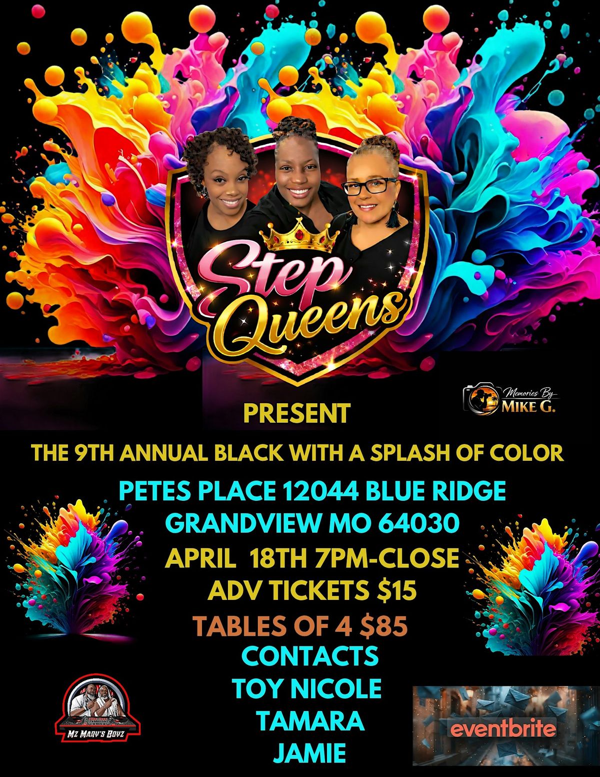 BLACK THEME WITH THE STEP QUEENS A NIGHT OF DANCING AND BEAUTY. ADD A SPLASH OF COLOR TO YOUR BLACK IS OPTIONAL.