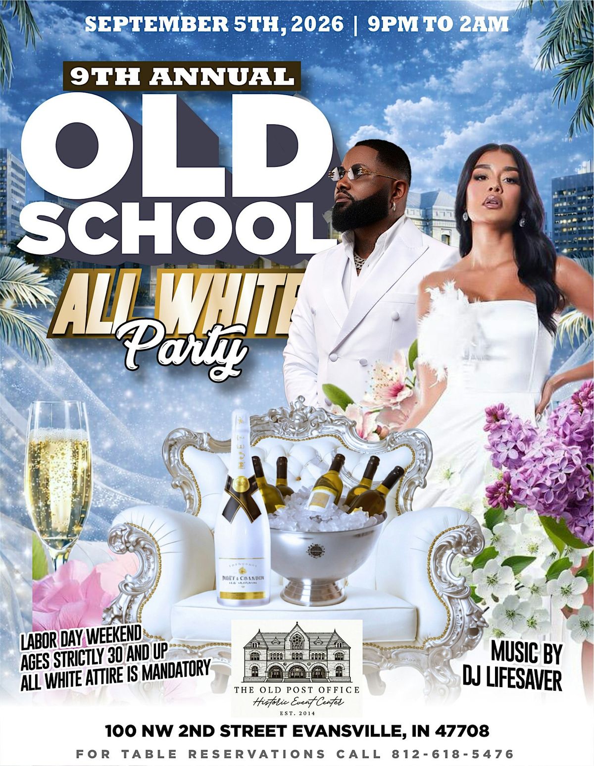 Ages 30 and over. All white clothing is Mandatory. Doors open at 9pm.