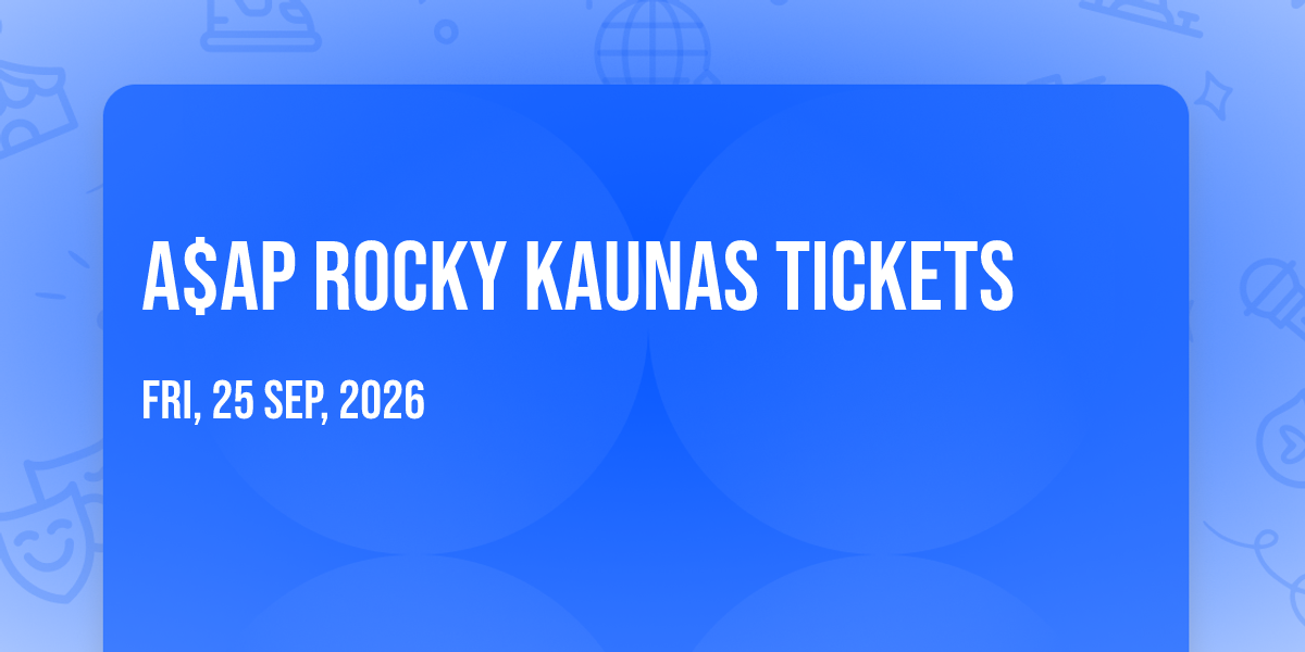 A$AP Rocky at Žalgirio Arena🌟 Step into a world of wonder at A$AP Rocky Kaunas Tickets, where extraordinary moments await! 🏛️ Located at Žalgirio Arena in dynamic Kaunas, KU, this event will become the talk of the town. 📅 Join us on September 25th, 2026 at 07:30 PM for a celebration that defies the ordinary. ✨ This curated experience brings together the best of entertainment, culture, and community spirit. Every detail has been thoughtfully planned to ensure an unforgettable experience for all our guests. 🎯 Take advantage of this opportunity to be part of something special. 🎟️ Secure your spot with tickets at 281.14 EUR. 🎊 Early registration is recommended as space is limited!