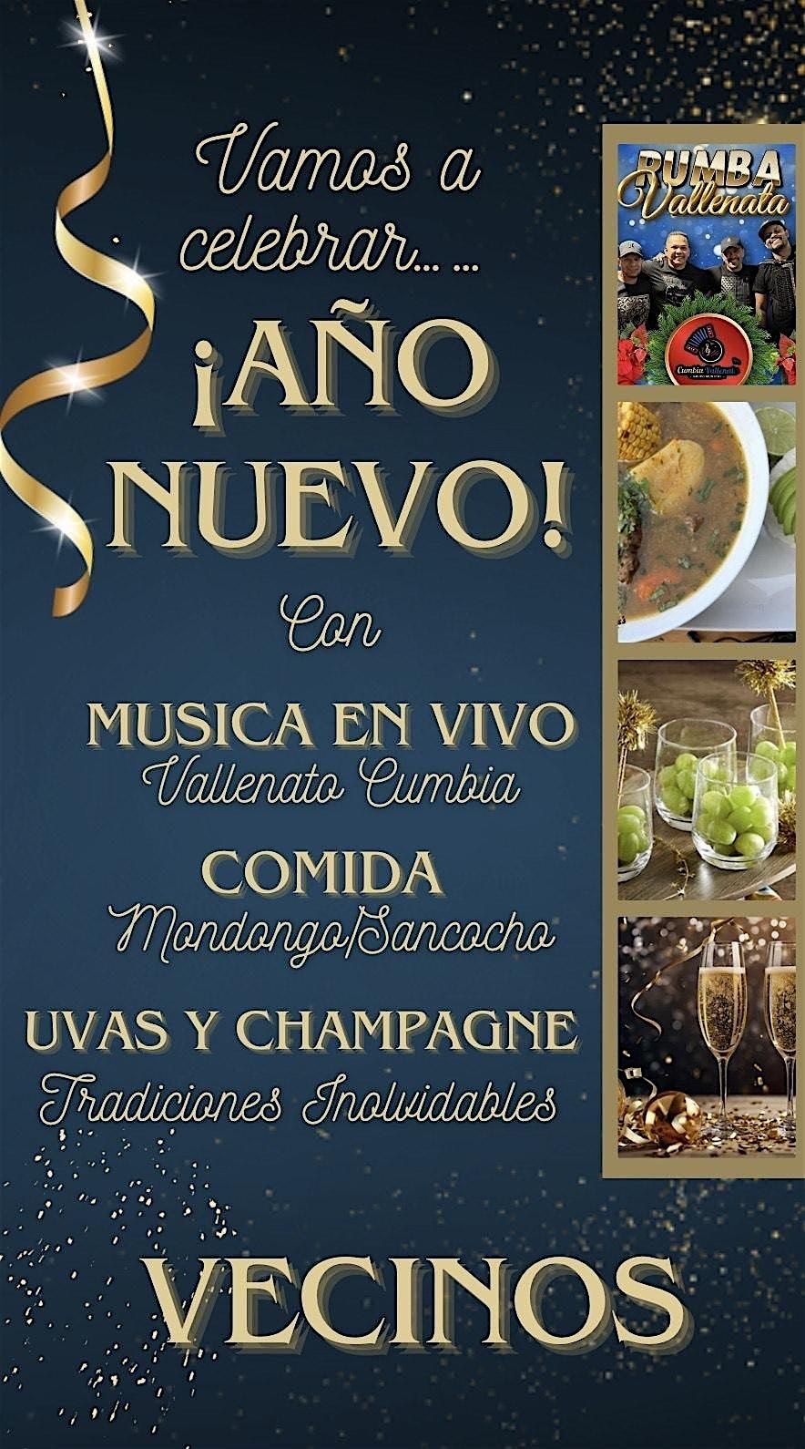 Este 31 de diciembre celebraremos juntos con música en vivo de cumbia y vallenato, deliciosa sopa de sancocho y mondongo, champán, uvas y tradiciones inolvidables para recibir el Año Nuevo con alegría y en comunidad.