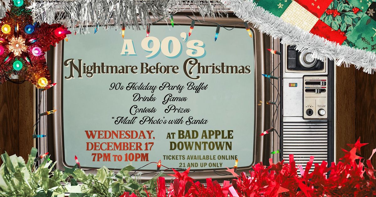Dad smoking a cigarette, while holding the baby, while driving...Welcome to your 90’s Nightmare Before Christmas.It’s the Christmas party your parents hosted in 1994… but with better drinks.Wednesday, December 17th from 7pm-10pm