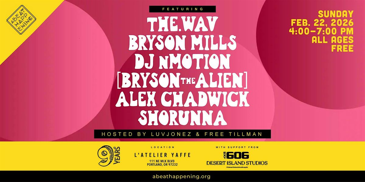 @abeathappening is a free, all ages, monthly, BIPOC and LGBTQIA-centered, inclusive, music producer and DJ showcase based in Portland, Oregon featuring all genres, all skill levels, and all levels of experience. Hosted by Luvjonez @luvjonezmusic and Free Tillman @leehtillman