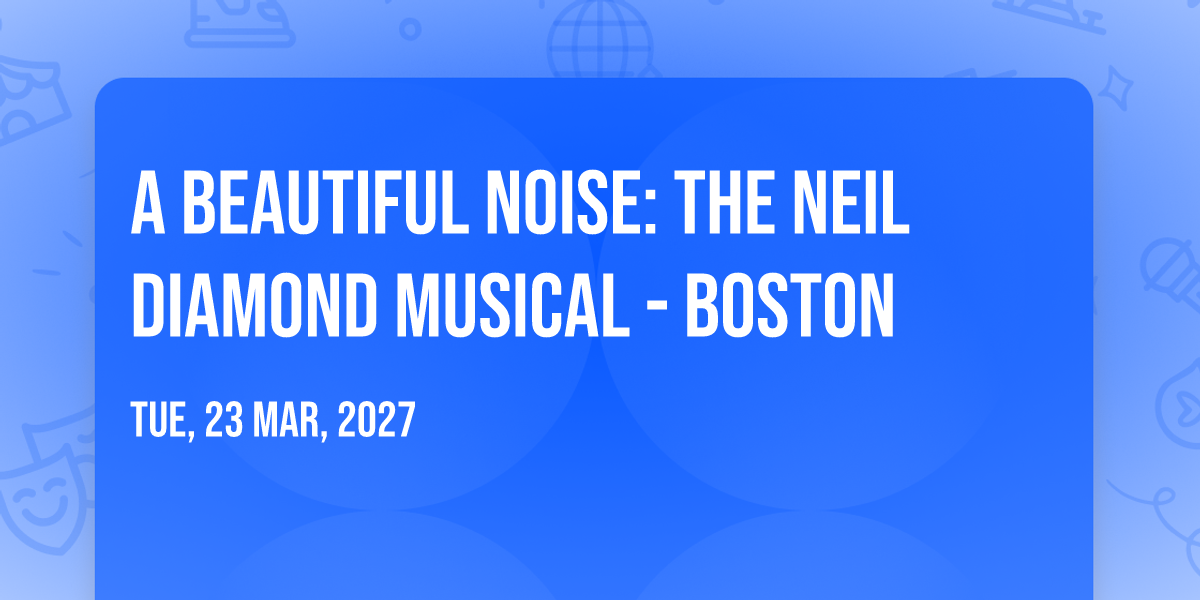 📍 Location: 42.354, -71.0623🌟 Journey into wonder at A Beautiful Noise: The Neil Diamond Musical - Boston, where extraordinary experiences await around every corner! 🏛️ Set against the backdrop of Citizens Bank Opera House in dynamic Boston, MA, this event promises to exceed all expectations. 📅 Join us on April 4th, 2027 at 10:30 PM for a celebration that combines innovation, entertainment, and community spirit in perfect harmony. ✨ There will be an atmosphere where memories are made and stories come alive, ensuring every guest experiences something truly remarkable. 🎊 This is more than just an event; it's a journey into the extraordinary!