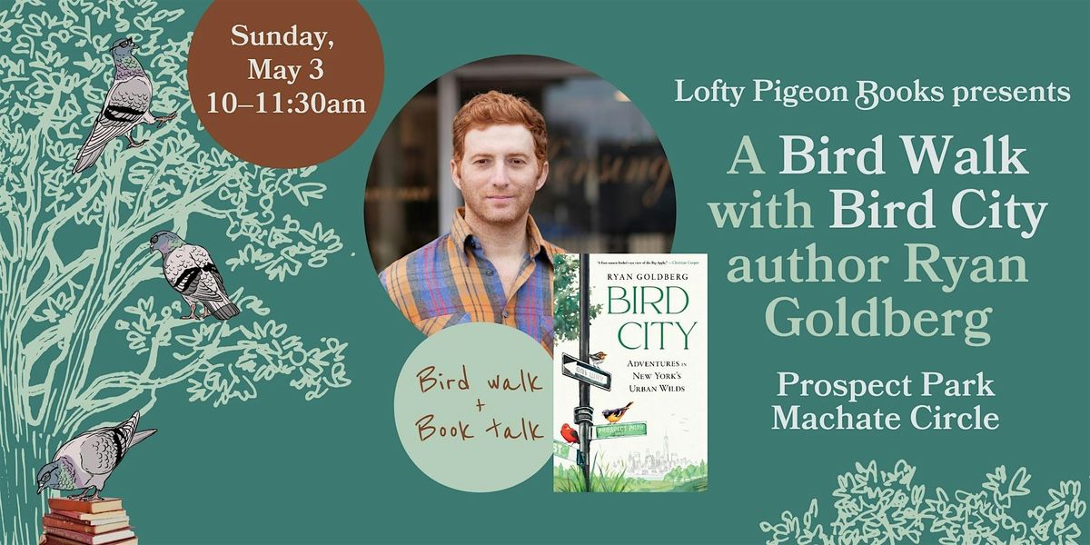 Acclaimed local journalist and birder Ryan Goldberg is the author of Bird City: Adventures in New York’s Urban Wilds, an infectiously impassioned tour of the five New York City boroughs that offers city dwellers and bird lovers everywhere a surprising, delightful new view of the concrete jungle—through its abundant and diverse bird population. Join Ryan for a lively and informative bird walk through Lofty Pigeon's backyard, Prospect Park, during peak spring migration season.