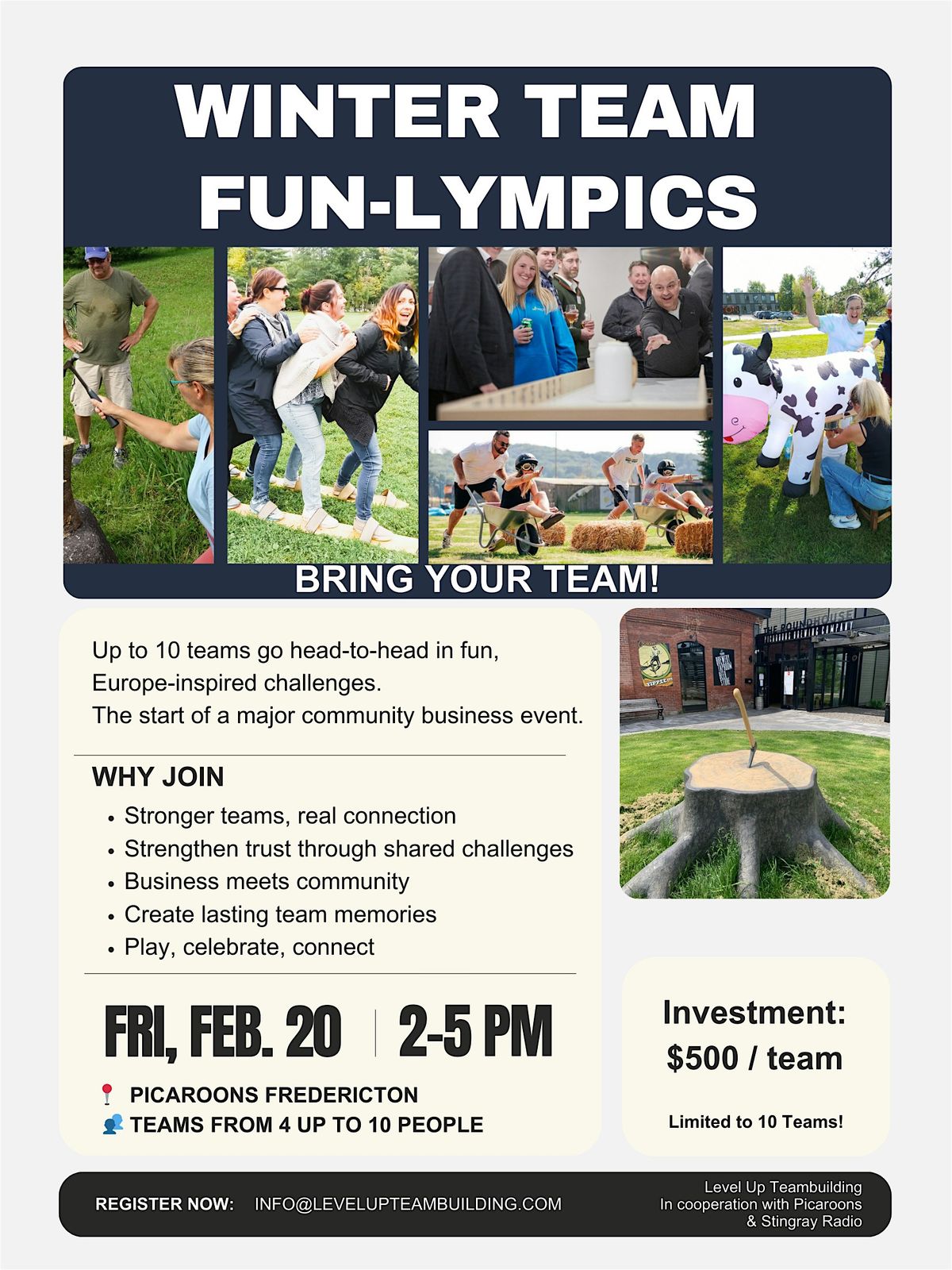 The playful Winter Team FUN-Lympics challenge is a bold, Europe-inspired team event designed to boost morale, spark connection, and create shared memories — all in the cozy, community-driven vibes of Picaroons in Fredericton.