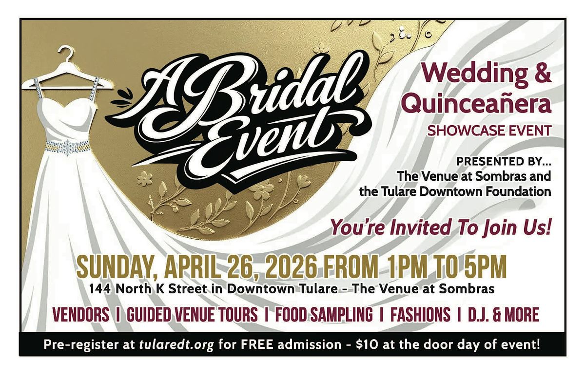 Imagine your guests stepping into a world they didn't know existed in Tulare. Visit the newly remodeled Venue at Sombras and take a tour to see the beautiful hardwood, marble and hand-crafted accoutrements available for your enjoyment. Visit with vendors who experienced in planning and working with weddings, bridal parties, QuinceaƱeras and birthday parties. Check out the selection of dresses, rental equipment and get insights into how you can have the perfect event. This is a wedding and party planning event you'll want to attend!