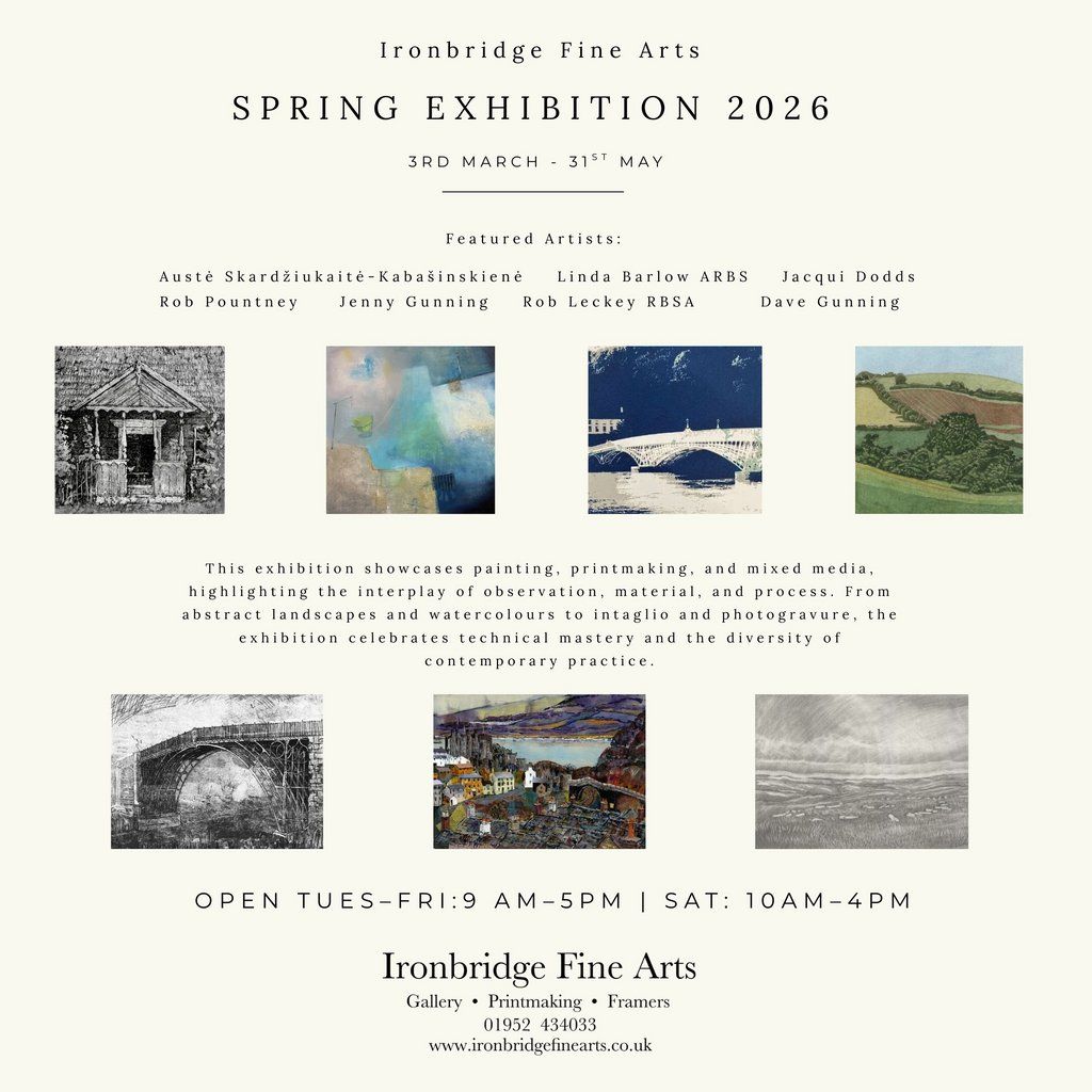 Spring Exhibition 2026 at Ironbridge Fine Arts featuring Linda Barlow Jacqui Dodds Auste Skardziukaite Rob Leckey Rob Pountney Dave and Jenny Gunning