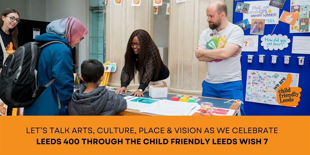 Join us for an interactive workshop exploring how we can work together to make Leeds the best city for children. The session is rooted in the 12 Wishes, shaped by the voices of over 80,000 children and young people across Leeds, and will focus on Wish 7: ensuring children and young people know about the different things to do and places to go in the city, and can enjoy a wide range of cultural experiences - from art and music to sport and film.