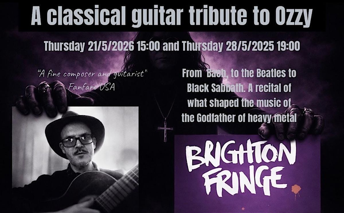 Get ready for an amazing evening as we bring you a classical guitar tribute to the Prince of Darkness himself, Ozzy Osbourne! Experience his iconic hits reimagined with beautiful acoustic melodies. This is an in-person show perfect for fans of rock and classical music alike. Don't miss out on this unique blend of styles and soulful performances that pay homage to a true legend. See you there!