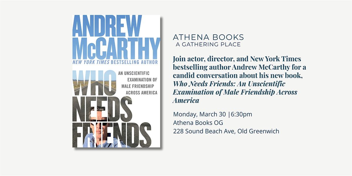 A seemingly innocuous, if direct, question from Andrew McCarthy's son left him reeling. McCarthy did have friends, but like so many other men, the necessities of modern adult life had forced his friendships to the background. At one point his friends had been instrumental in broadening his horizons, bolstering his courage, providing safe harbor. Now, McCarthy found himself questioning what had happened to those friendships, whether he needed them, what he valued, and what he had to offer. A simple question had become a moment that demanded a reckoning.