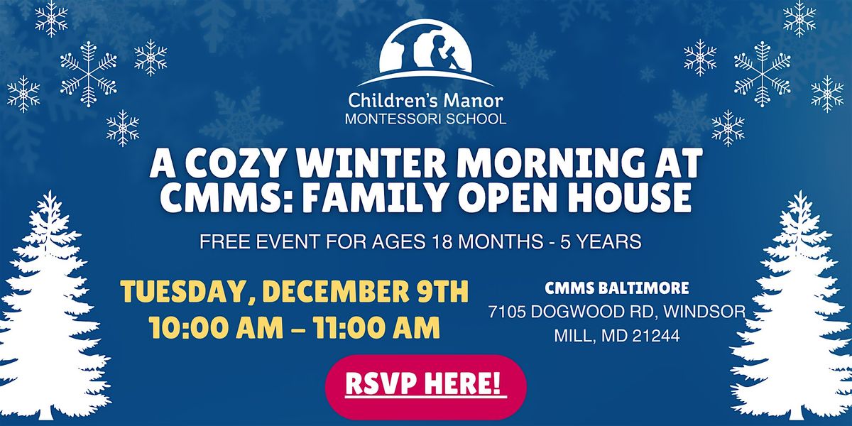 Join Us for a Cozy Winter Morning at CMMS: Family Open House! Celebrate the winter season with a morning at Children's Manor Montessori School - Baltimore! Prospective families are invited to our Cozy Morning Open House, where children and parents can participate in a hands-on winter-themed craft to take home, tour our classrooms, and experience the magic of Montessori. This event is for children aged 18 months - 5 years old, and up to 2 guardians.