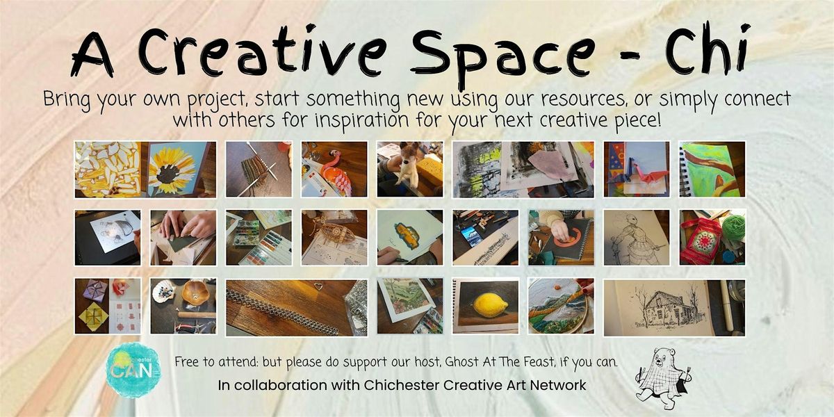 If this sounds like you, please come along to our new community group A Creative Space – Chi, meeting on the 2nd and 4th Tuesday of each month, 6:30–8:30pm at 33-34 Ghost At the Feast, North Street, Chichester.