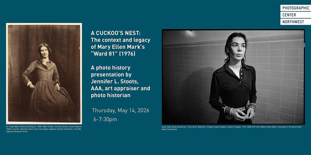 Join us for a lecture with Jennifer L. Stoots, AAA, art appraiser and photo historian, on Mary Ellen Mark's 1976 project "Ward 81". In recognition of Mental Health Awareness Month and the 50th anniversary of Mark's Ward 81 photographic project, this presentation will illuminate how photographs of mentally ill women were used historically and will establish the cultural context for the project, when she and Dr. Karen Folger Jacobs lived on the women's secure ward at the Oregon State Hospital — the same facility where "One Flew Over the Cuckoo's Nest" had been filmed the year before. While Mark’s project is unique, it is part of a long legacy of popular interest in mental illness, as reflected in literature, philosophy, feature films and documentaries, not to mention the work of other photographers, plus independent advocacy and public policy.