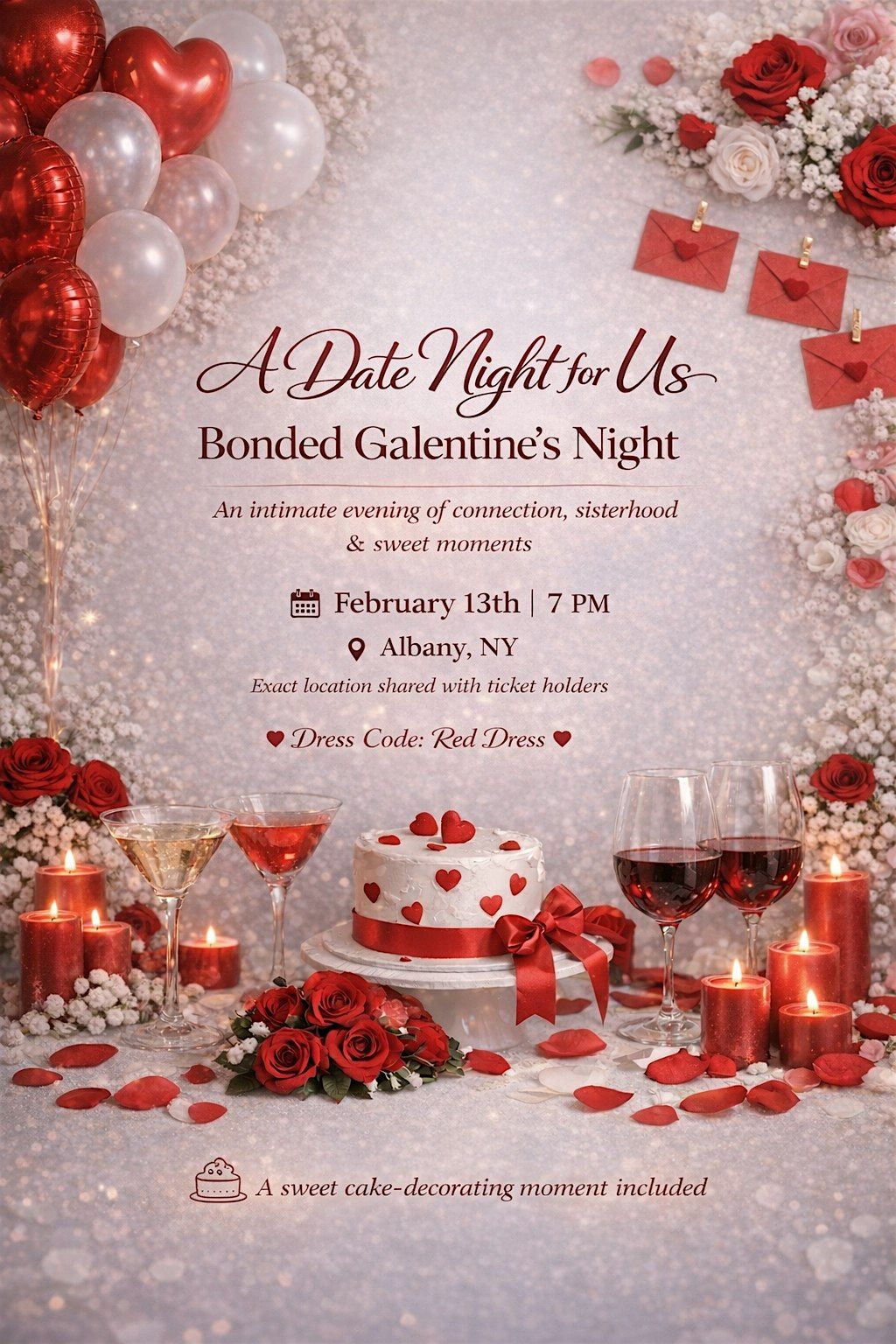 A Date Night for Us – Bonded Galentine’s Night is an intimate Valentine’s experience created for women to come together, connect, and celebrate sisterhood in a beautiful, elegant setting.