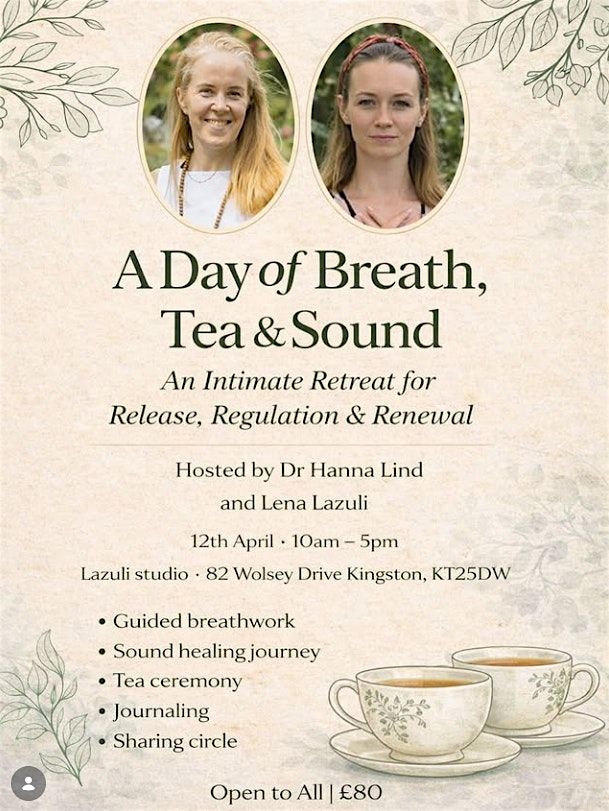Join us for a deeply restorative one-day retreat designed for a small, intimate group seeking emotional release, nervous system regulation, and meaningful connection. This immersive experience weaves together Neurodynamic Breathwork®, a Gong Fu Cha tea ceremony, and a healing sound bath — creating a full arc of activation, grounding, and integration.