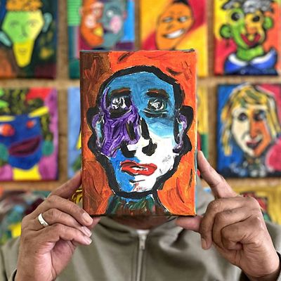 - Paint an abstract self-portrait onto canvas using acrylic paints