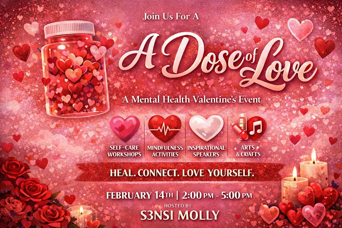 A Dose of Love is a Valentine’s Day mental health event centered on self-love, healing, and good vibes. This experience is all about pouring love back into yourself in a safe, uplifting space filled with positive energy and great music.