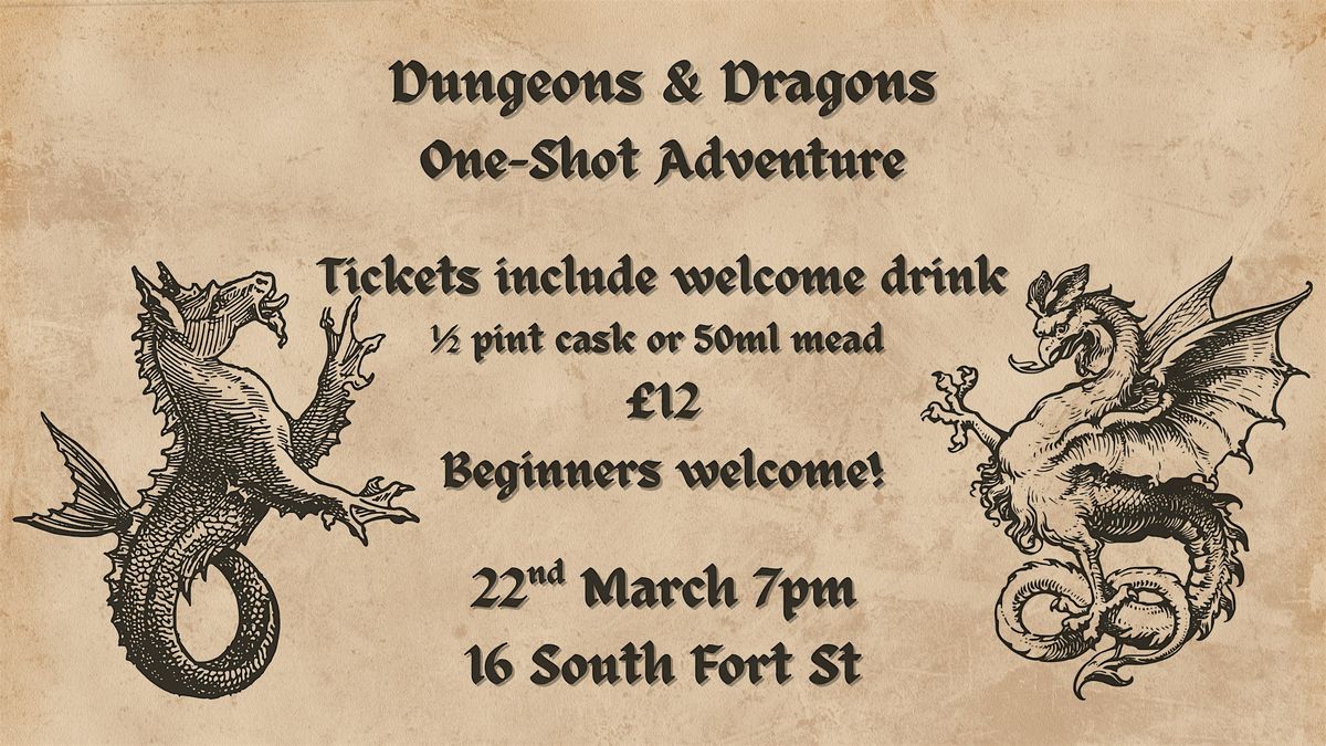 Beginner friendly TTRPG night. For our first session we will be running multiple D&D games based on pre-existing D&D One-Shots