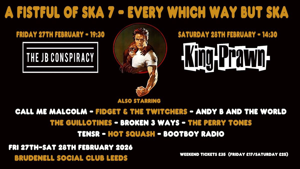 A Fistful of Ska storms back in 2026 for its epic 7th edition!Get ready for two days of unstoppable energy, featuring the best original Ska and Ska Punk bands from across the scene. This is skankin' heaven, and you won't want to miss it!Friday Headline: The JB ConspiracySaturday Headline: King PrawnFull line upFridayThe JB ConspiracyBroken 3 WaysThe Perry TonesSaturdayKing PrawnCall me MalcolmFidget & The TwitchersAndy B and the WorldThe GuillotinesTensrHot Squash