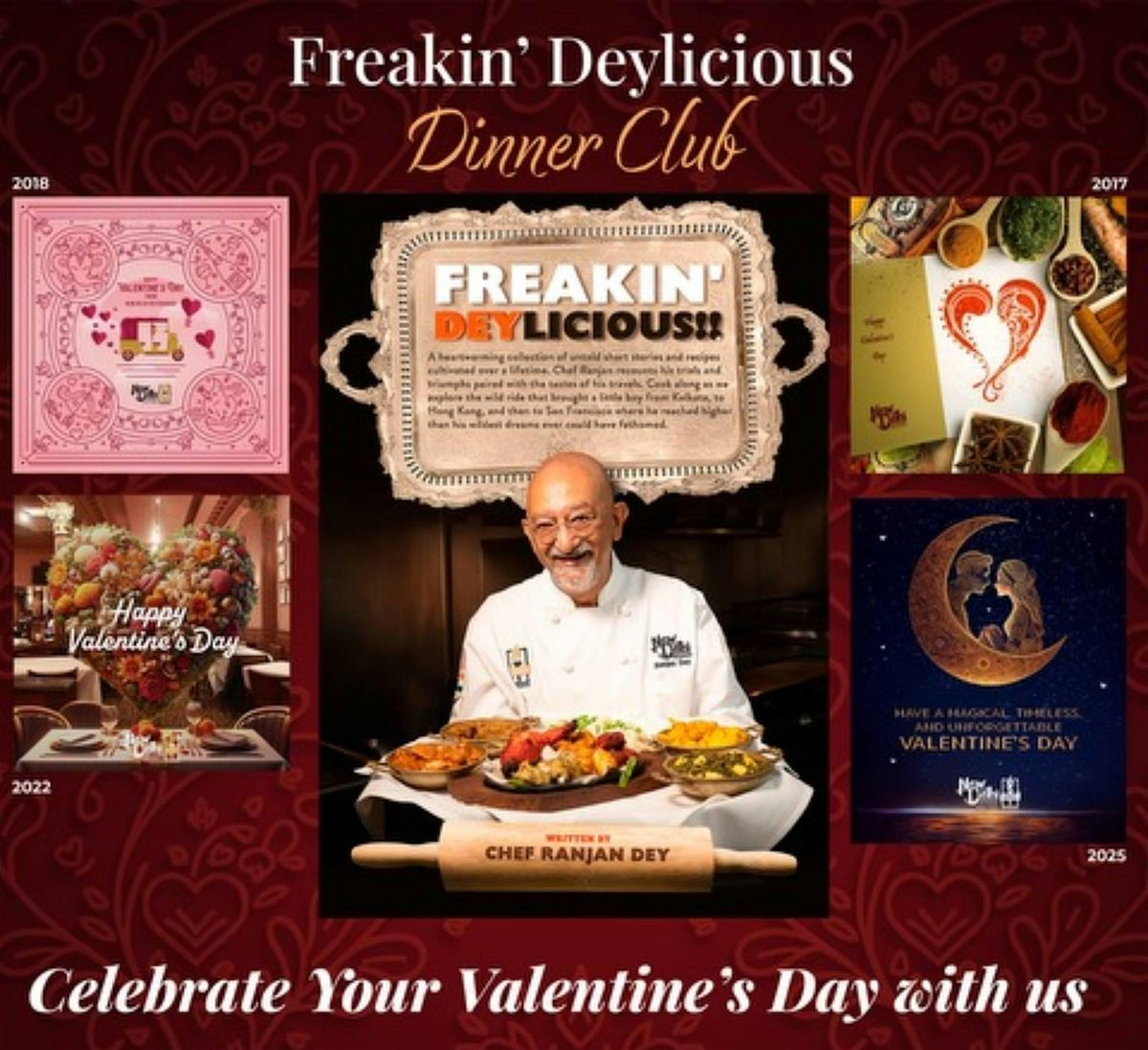 Each intimate gathering brings to life a story and recipe from Ranjan’s forthcoming memoir, Freakin’ DEYlicious — paired with the cultural celebrations and milestones of the month. Over two immersive hours, expect an evening of flavors, stories, and heartfelt exchange.