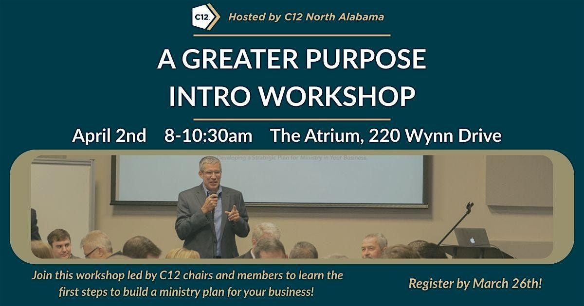 On Thursday, April 2nd, 2026, from 8:00 AM- 10:30 AM, we will gather at The Atrium to learn key steps to position your business for A Greater Purpose. This event is designed to give practical tools to business leaders who want to see a culture of care drive Business as a Ministry to produce Eternal Fruit.