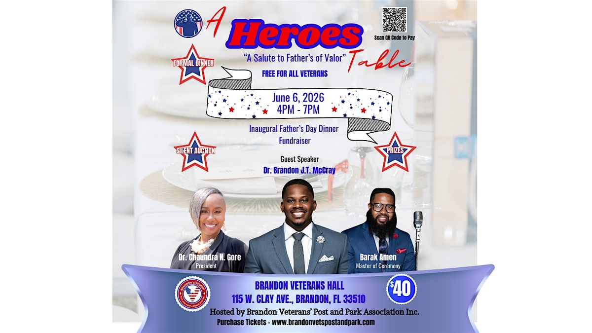 #AHerosTable #FathersOfValor #Veterans #FathersDay2026 #BrandonFL #SupportOurVeterans #VeteranCommunity #SaluteToService #BrandonVeteransHall #CommunityStrong
