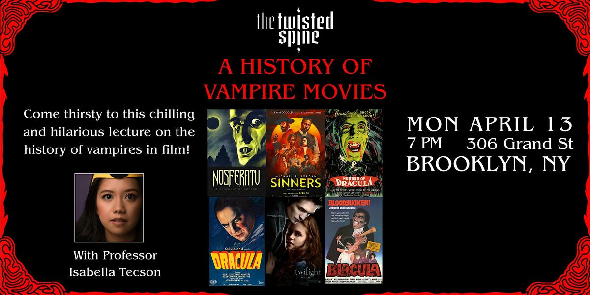 CUNY English and Film Criticism professor Isabella Tecson will guide you through the glamour of the Universal Monsters, the gritty and gory world of Hammer Film, and close with some thoughts on Sinners, all while keeping an eye out for wooden stakes. Everyone is invited to this hour-long talk, except for vampires!
