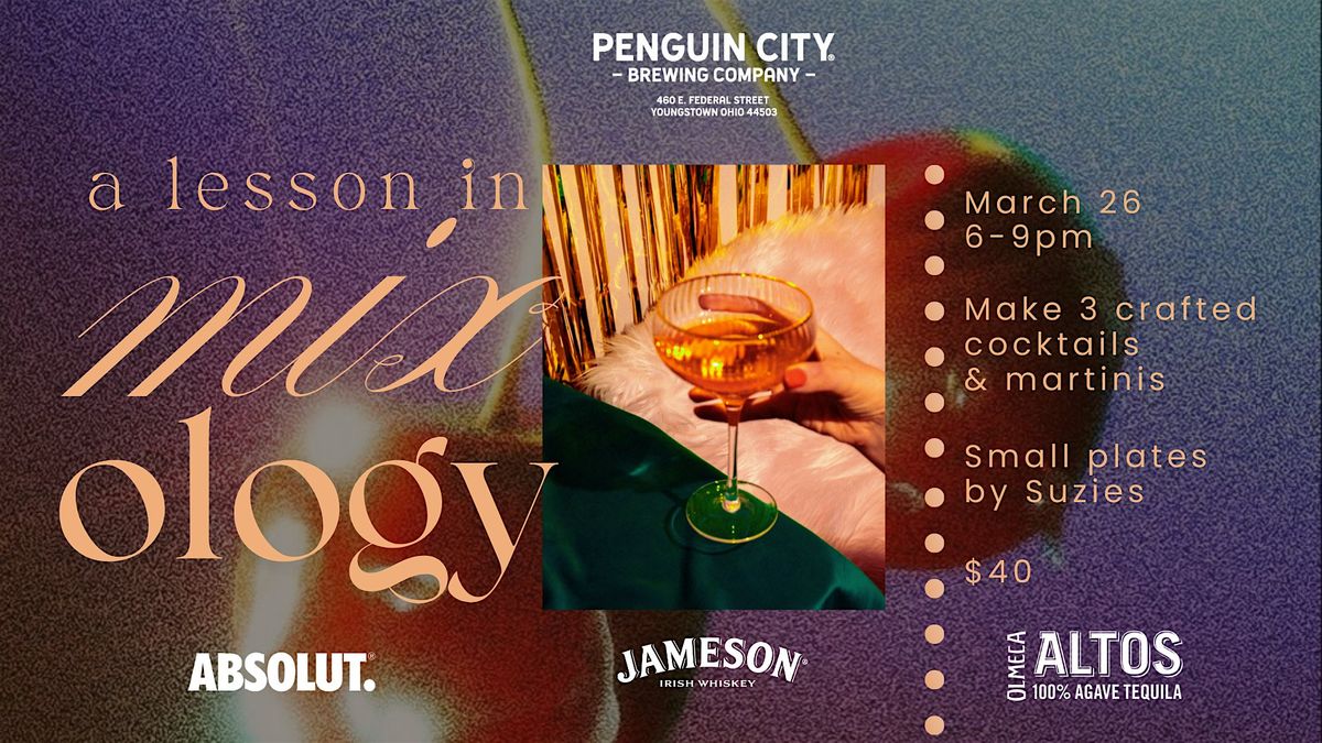 A lesson in mixology hosted by Penguin City, Absolut, Jameson, and Altos. Learn to make hand crafted cocktails and martinis!