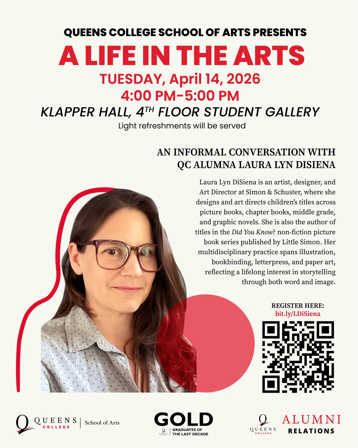 Join us for food and an informal conversation with Laura Lyn DiSiena, Queens College alumna, class of 1998. DiSiena will discuss her time at QC, how she developed her career, and answer students' questions on how to achieve professional success.