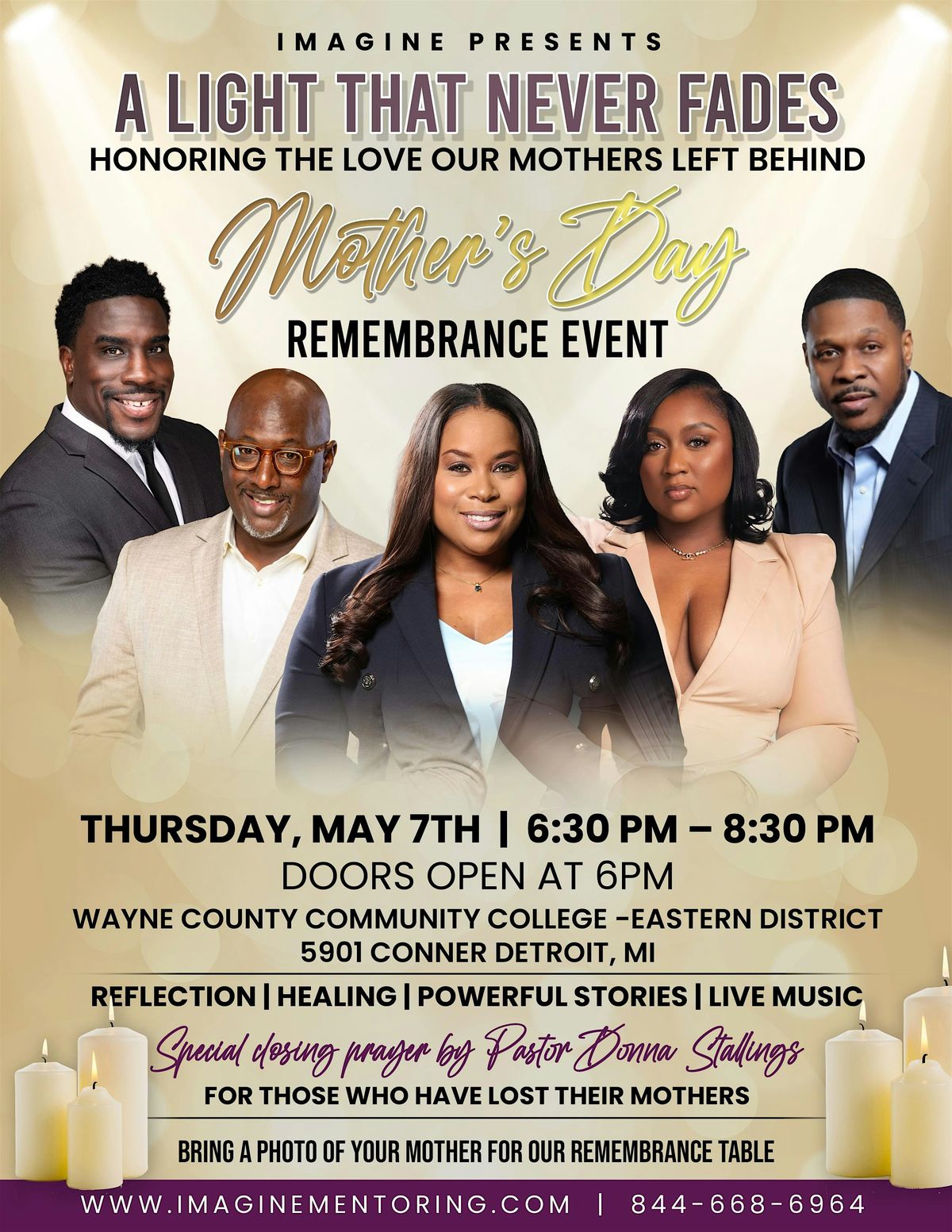 Join us at Wayne County Community College Eastern District on May 7, 2026 at 6:30 PM (ET) for a heartfelt evening honoring the special moms in our lives. This relaxed gathering is all about sharing memories, lighting candles, and feeling connected. Bring your stories, your smiles, and let’s celebrate together in a warm and welcoming space. We can’t wait to see you there! Let's heal together.