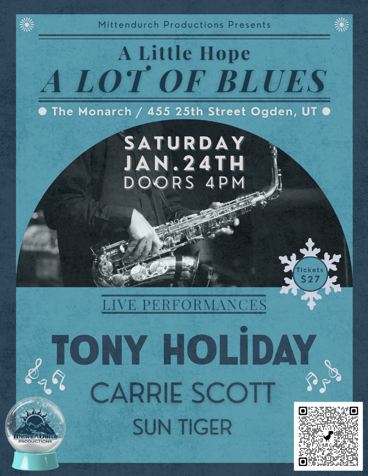 Soulful harmonica heavy-hitter Tony Holiday is returning to Utah to blow the roof off the place alongside powerhouse lead singer Carrie Scott. While the community knows her from The Soulistics, who is the Founder and Therapist at Utah Neurowellness Clinic and the Neurofeedback Program Director at Healing Pathways Therapy Center.