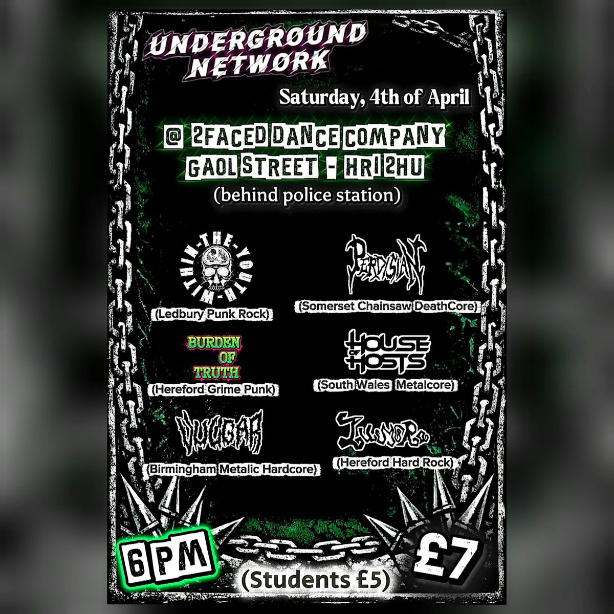 6 great bands in 1 night on Saturday 4th of April with The Youth Within, Perdisian, House of Hosts, Vulgar HC, Burden of Truth & Lumora