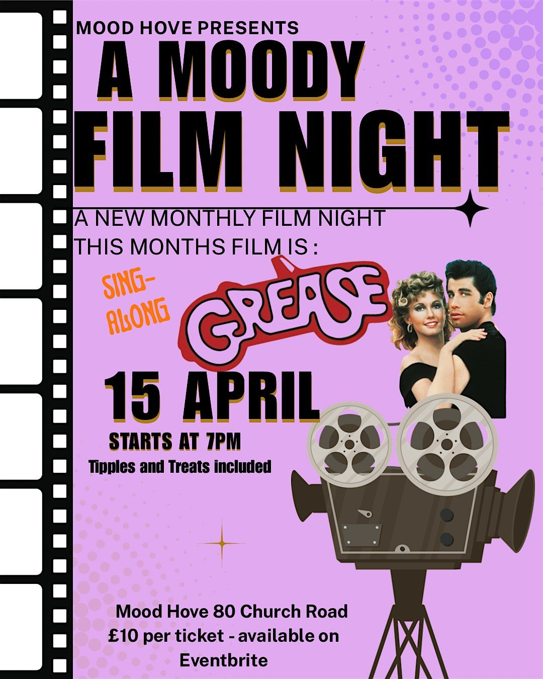 Get ready for a fun evening at Mood Hove on May 13, 2026 at 7:00 PM (BST)! Join us for a sing-along screening of the classic movie Grease. Whether you know all the words or just want to enjoy the vibes, it’s the perfect night out with friends. Bring your energy, your voice, and your love for this iconic film. See you there for a moody, musical night you won’t forget!