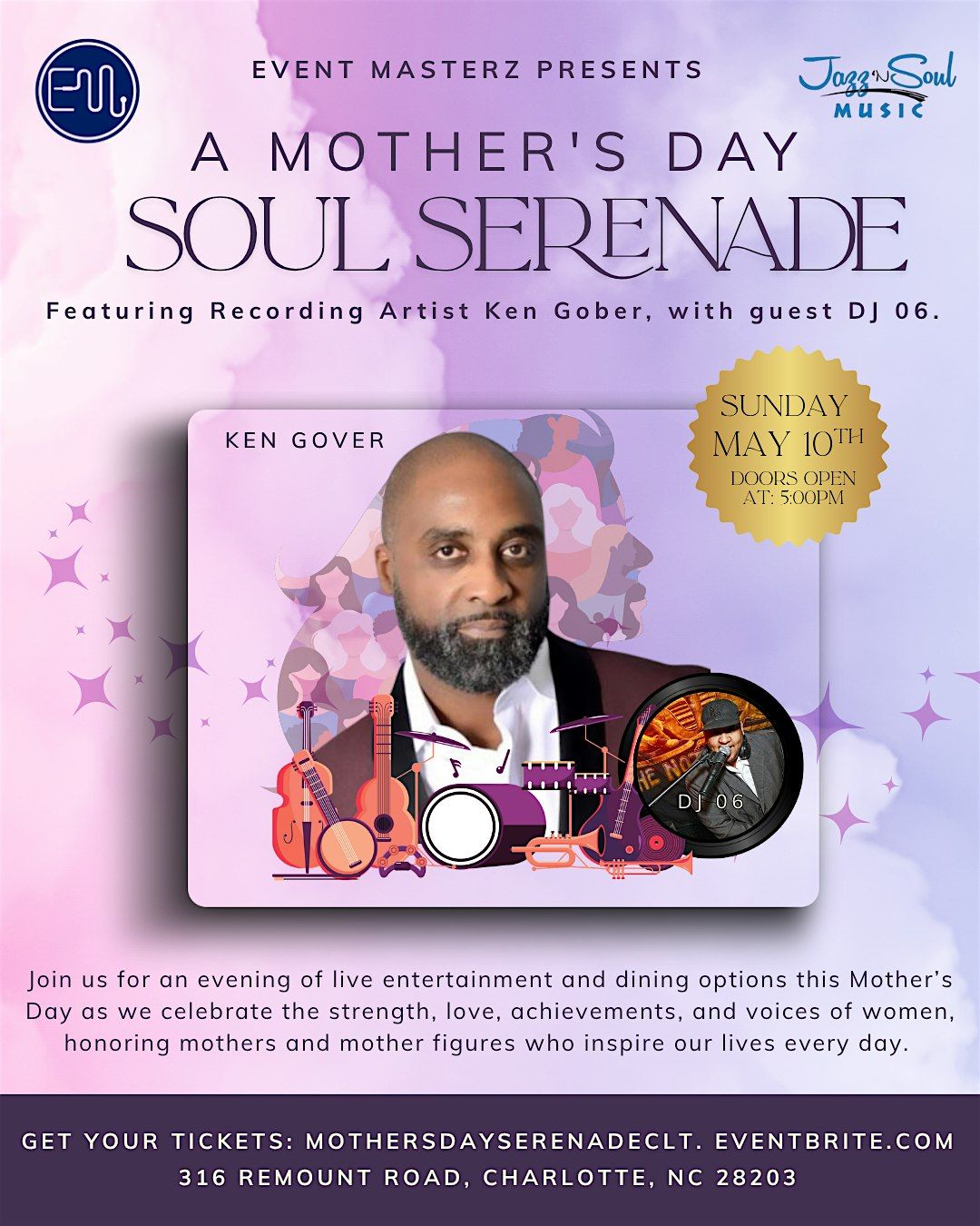Celebrate the beauty, strength, and love of motherhood at Soul Serenade: A Mother’s Day Celebration, presented by Event Masterz. Join us for an unforgettable evening dedicated to honoring mothers and mother figures who inspire our lives and communities every day.