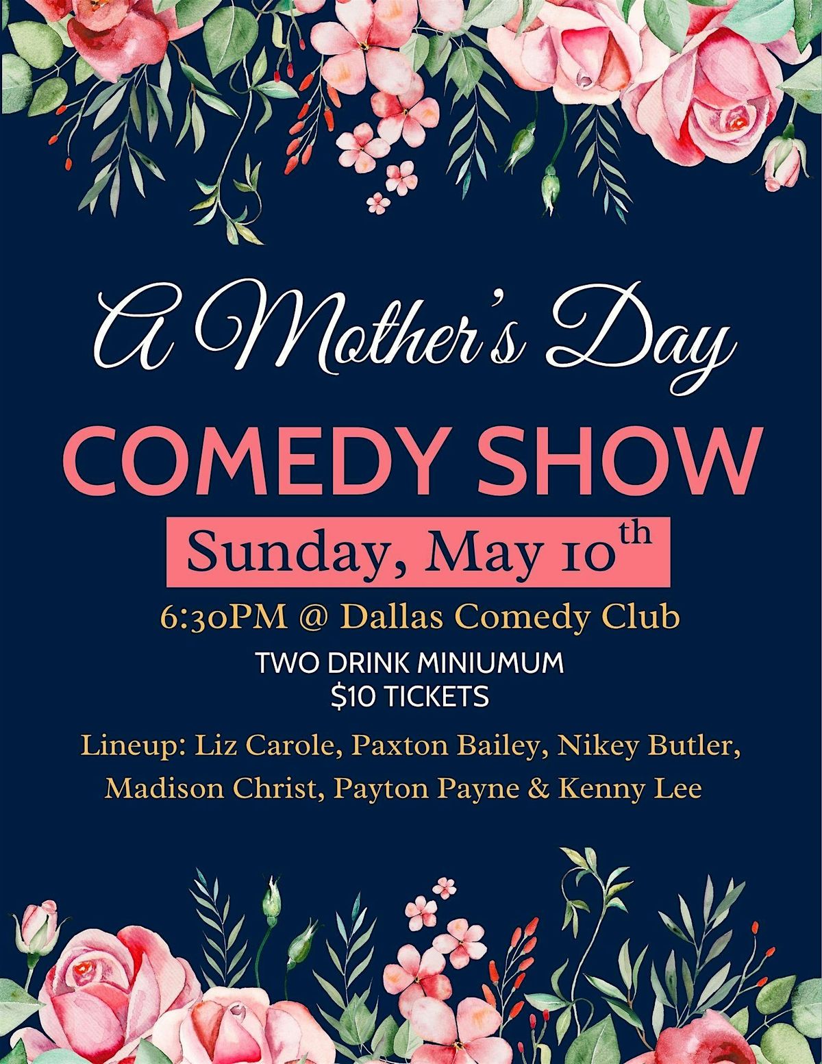 Join us at the Dallas Comedy Club on Sunday, May 10th at 6:30 PM for a showcase dedicated to the chaos, love, and occasional absurdity of family life. We’ve assembled a lineup of six hilarious stand-up comedians ready to share their best material about moms, parenting, and everything in between. Whether you’re bringing your own mother out for a laugh or just looking to relate to some shared family trauma, this show offers a perfect, high-energy tribute to the people who raised us.
