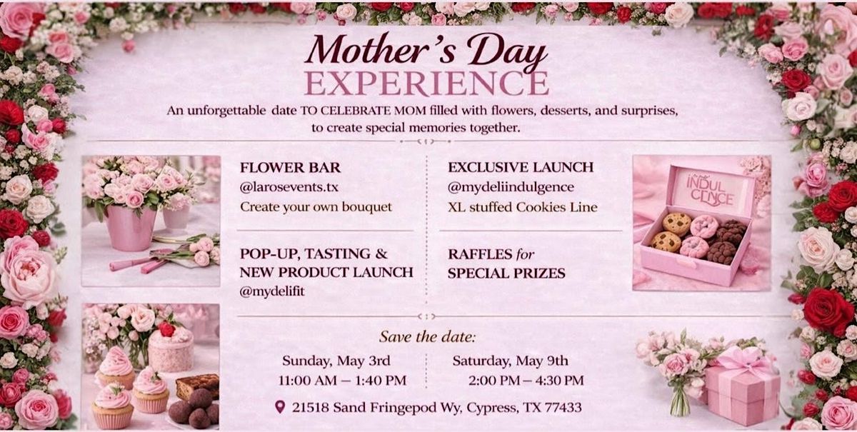 Save the date A beautiful Mother’s Day experience ✨ Enjoy a flower bar, desserts & shopping Limited spots—get your access today!
